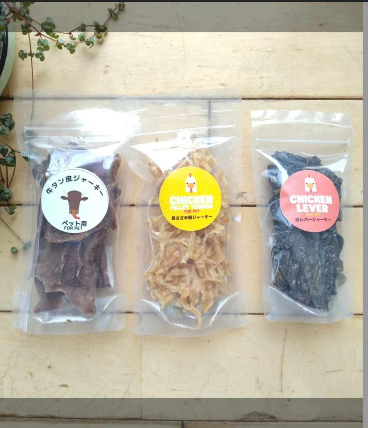 牛タン皮 鳥ササミ筋 鳥レバー のお試しジャーキーです。